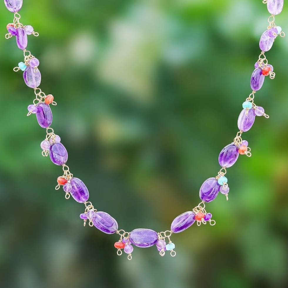 Gold Plated Necklace with Quartz and Amethyst Beads 'Sunset Mood in Violet' Item ID: 2671800013