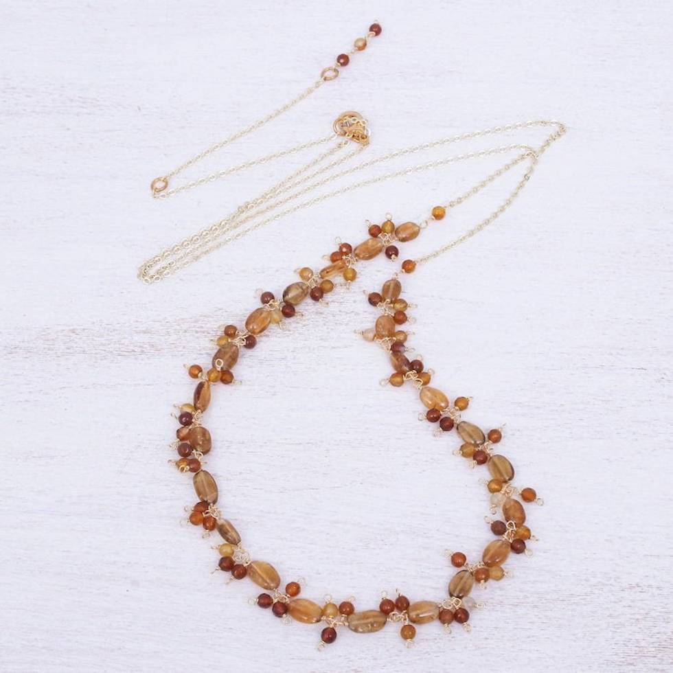 Gold Plated Necklace with Quartz and Citrine Beads 'Sunset Mood in Orange' Item ID: 2671800186