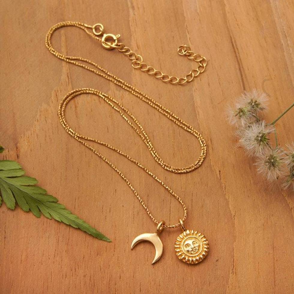 Gold-Plated Necklace with Sun Crescent Moon Dual Pendants 'Celestial Charm' Item ID: 2676662243