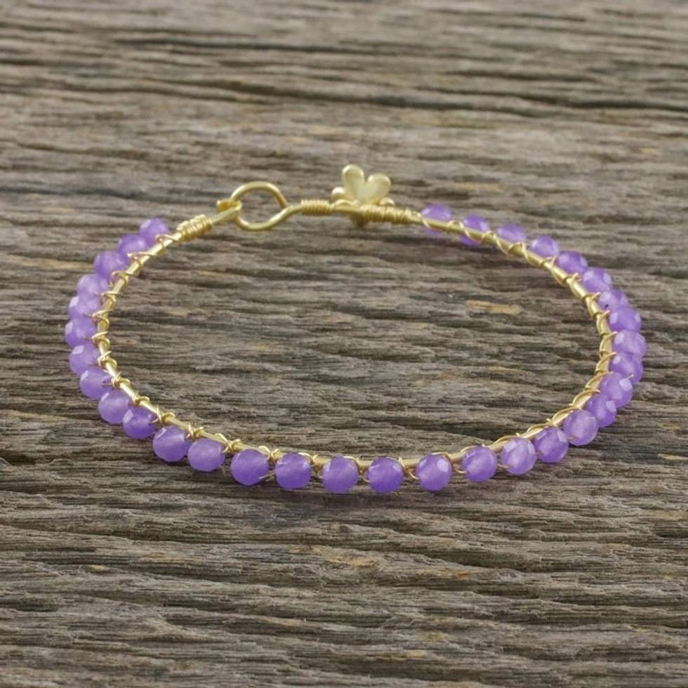 Gold Plated Purple Quartz Bangle Bracelet from Thailand 'Fall in Love in Purple' Item ID: 2671800807