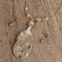 Gold Plated Quartz and Agate Necklace and Earring Set 'Dazzling Light' Item ID: 2669932433