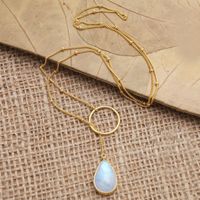 Gold-Plated Rainbow Moonstone Pendant Necklace 'Sky Blue Teardrop' Item ID: 2671669581