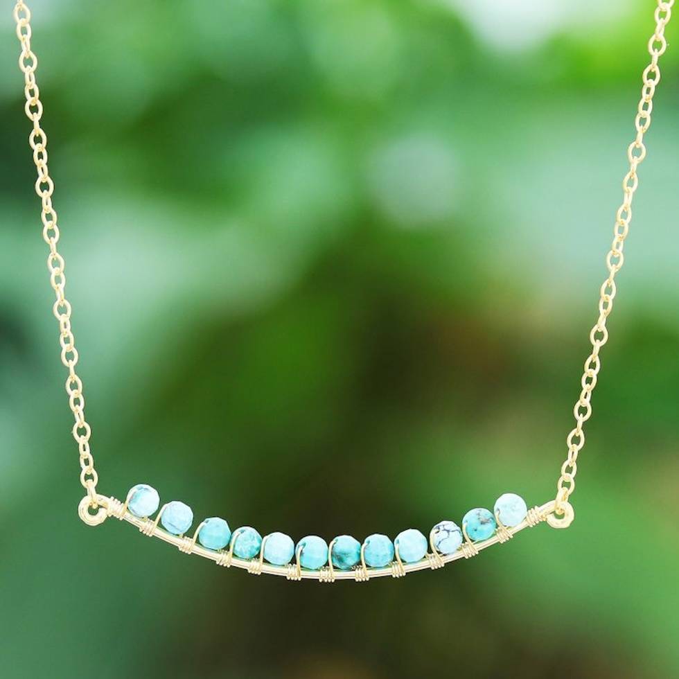 Gold Plated Reconstituted Turquoise Bar Necklace 'Golden Arc in Blue' Item ID: 2671641078