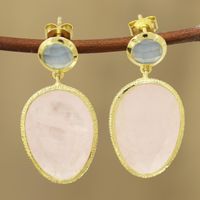Gold Plated Rose Quartz and Chalcedony Dangle Earrings 'Sparkling Muse' Item ID: 2671789907