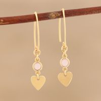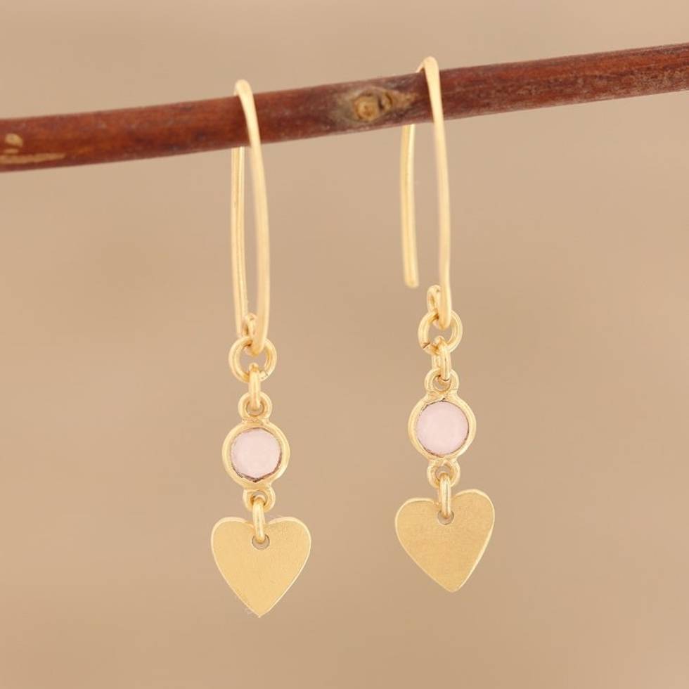 Gold Plated Rose Quartz Heart Dangle Earrings from India 'Delightful Hearts' Item ID: 2669955554