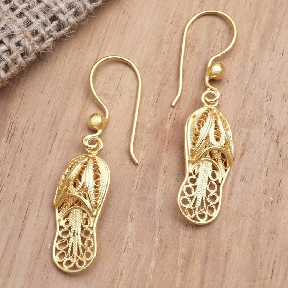 Gold-Plated Shoe-Themed Dangle Earrings 'Golden Slipper' Item ID: 2671745208