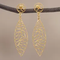 Gold Plated Silver Filigree Dangle Earrings from Peru 'Glistening Waves' Item ID: 2671691589