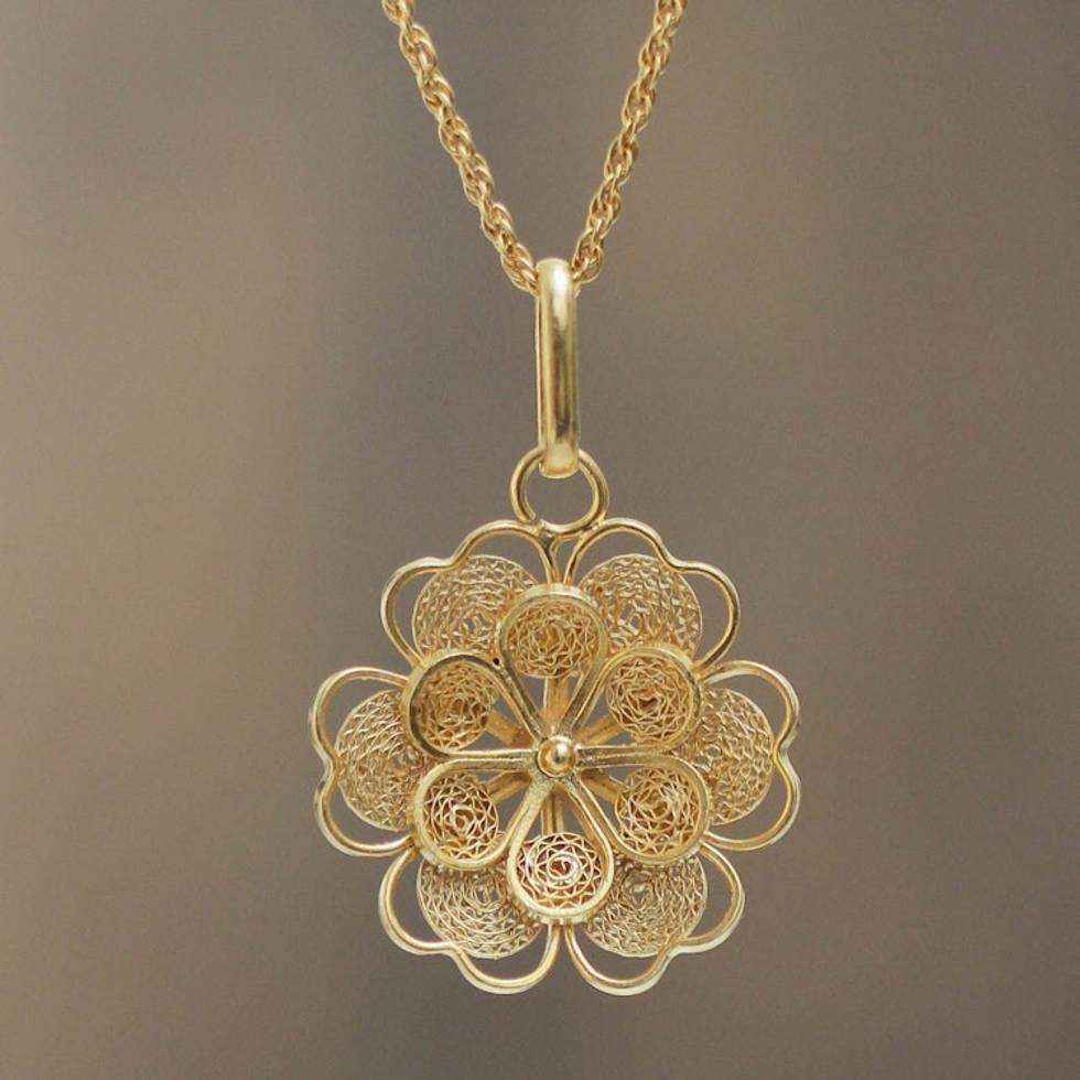 Gold Plated Silver Peruvian Filigree Flower Necklace 'Yellow Rose' Item ID: 2671695383