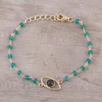 Gold Plated Smoky Quartz and Onyx Pendant Bracelet 'All Eyes on You' Item ID: 2671792797