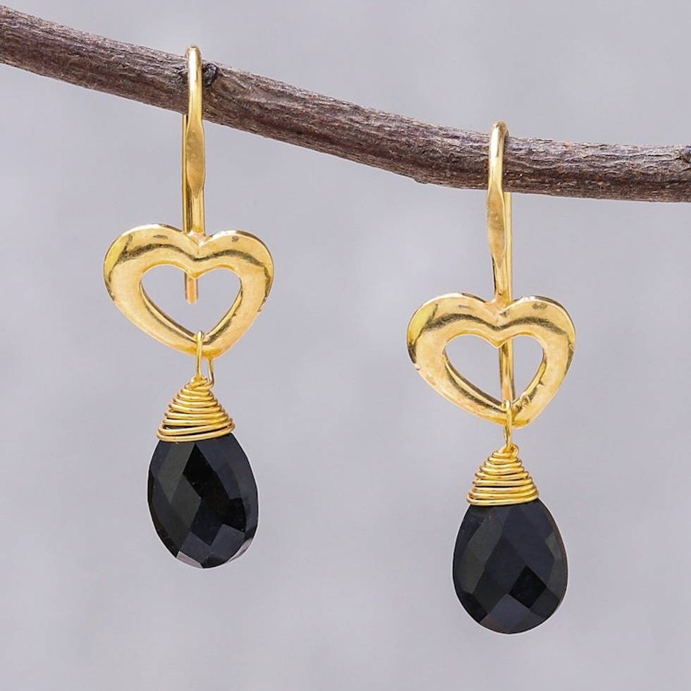 Gold Plated Spinel Heart Dangle Earrings from Thailand 'Time to Love' Item ID: 2671799513