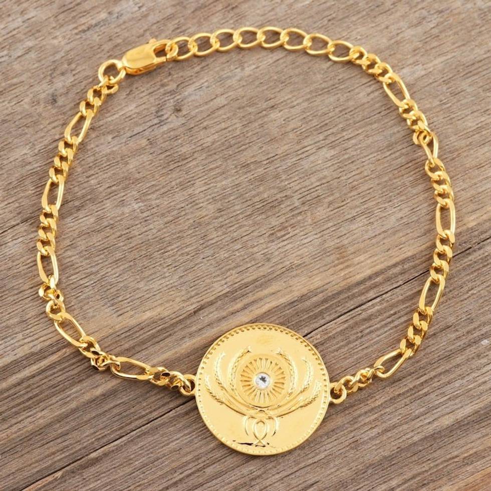 Gold Plated Sterling Silver and Blue Topaz Unity Bracelet 'Uniting People' Item ID: 2671789265