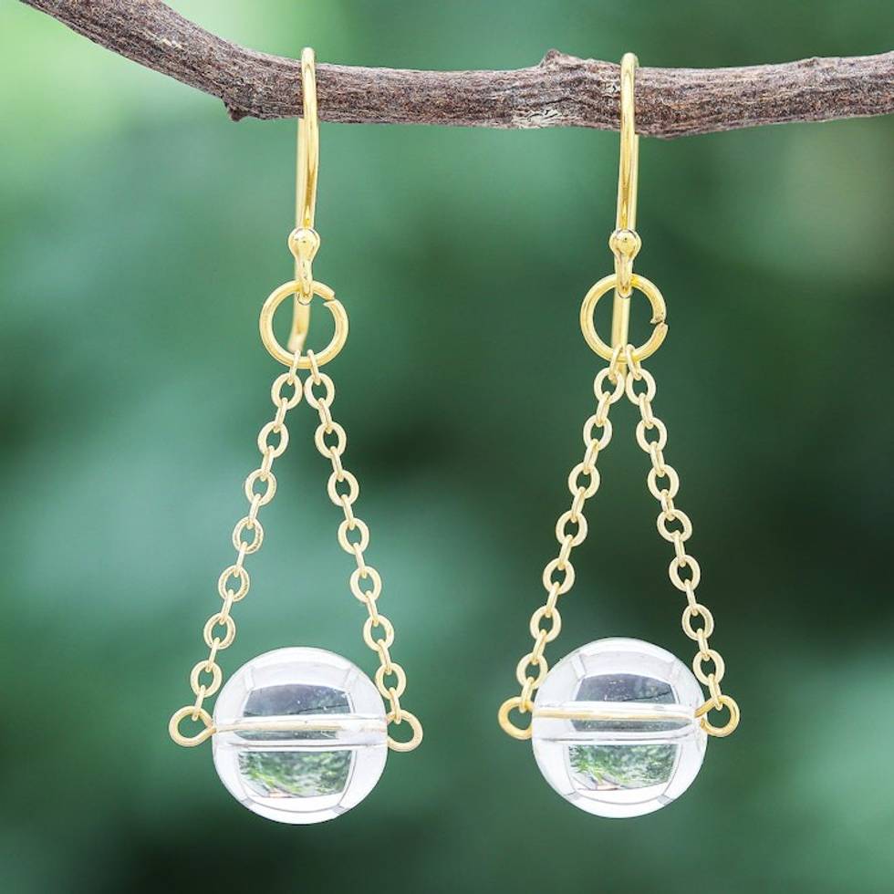 Gold-Plated Sterling Silver and Quartz Dangle Earrings 'Clear Night Sky' Item ID: 2671800302