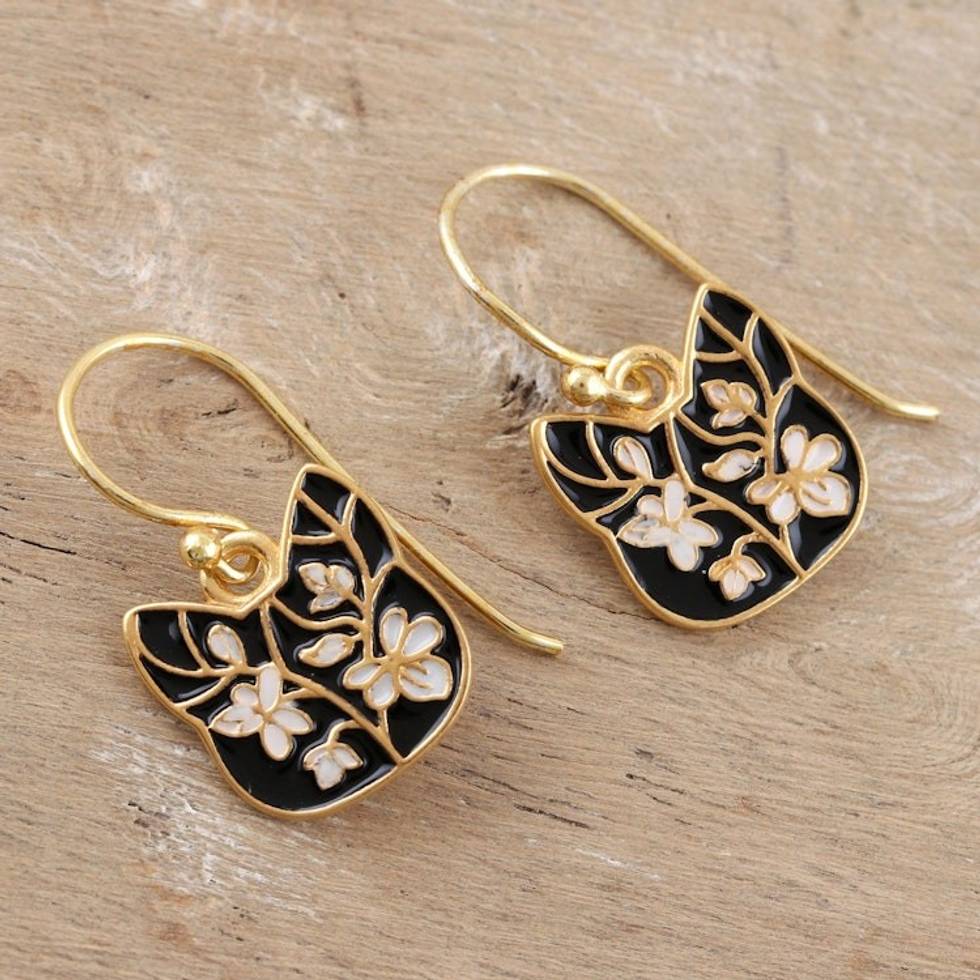 Gold-Plated Sterling Silver Cat Dangle Earrings 'Outdoor Cat' Item ID: 2669924503