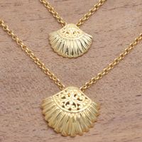 Gold Plated Sterling Silver Clam Shell Pendant Necklace 'Gleaming Clam Shells' Item ID: 2671810707