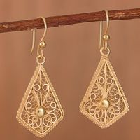 Gold-Plated Sterling Silver Filigree Kite Dangle Earrings 'Royal Scroll in Gold' Item ID: 2671401117