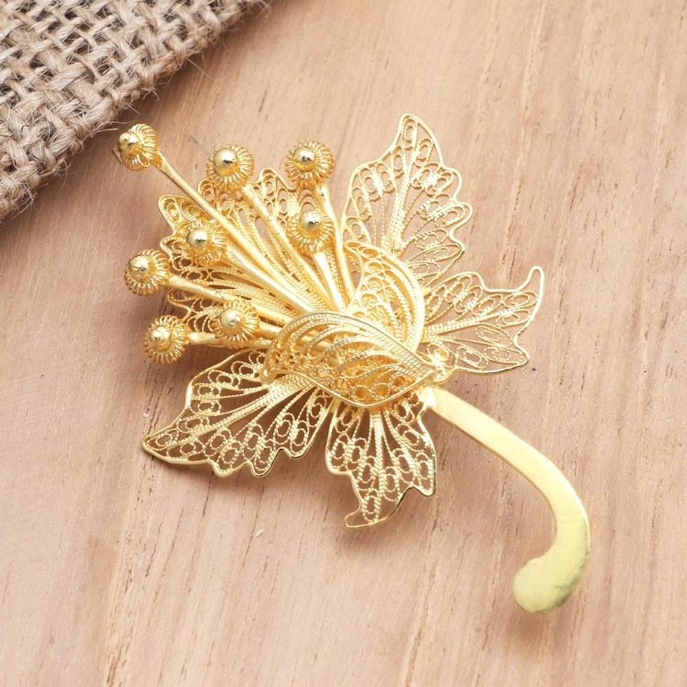 Gold-Plated Sterling Silver Flower Brooch 'Hibiscus Glow' Item ID: 2671745028