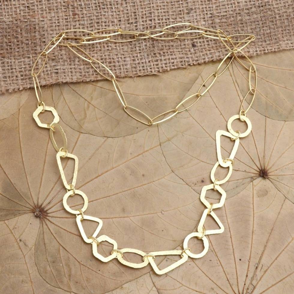 Gold-Plated Sterling Silver Geometric Pendant Necklace 'Geometry' Item ID: 2670802717
