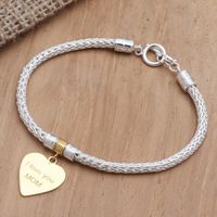 Gold-Plated Sterling Silver Heart Charm Bracelet from Bali 'Love for Mom in Gold' Item ID: 2671745076