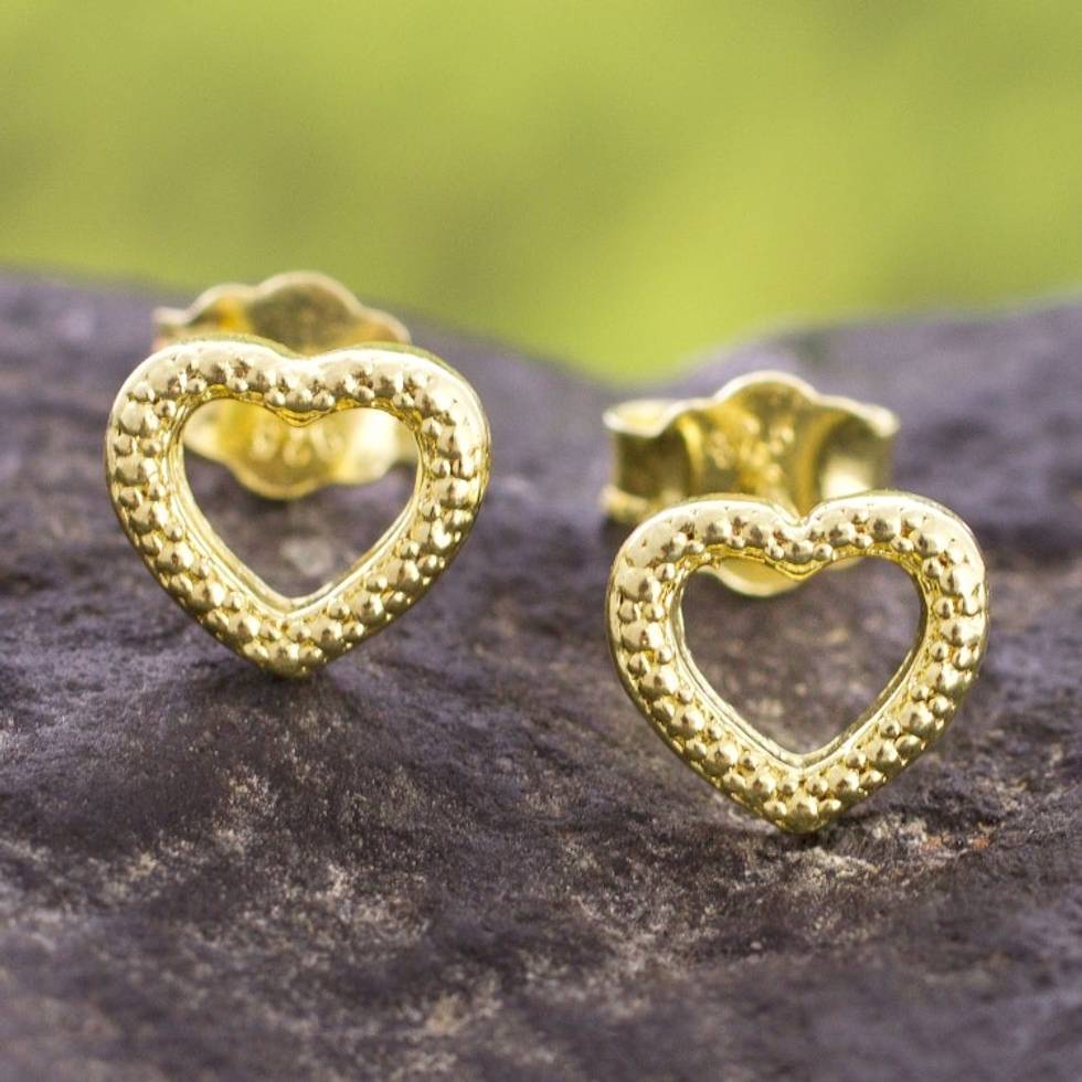 Gold Plated Sterling Silver Heart Stud Earrings from Peru 'Heart Dimples' Item ID: 2671690273