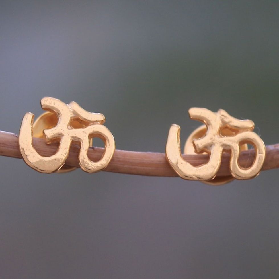 Gold Plated Sterling Silver Om Stud Earrings from Bali 'Regal Omkara' Item ID: 2671736759
