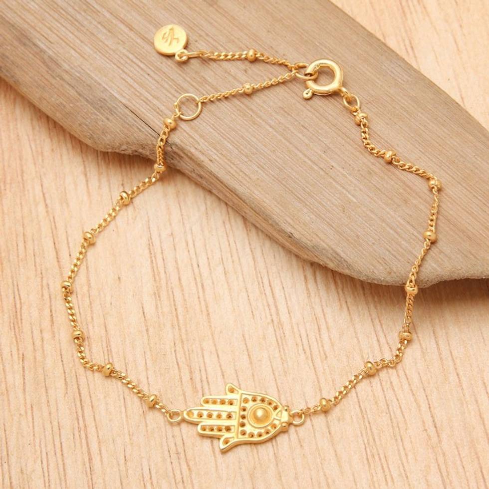 Gold Plated Sterling Silver Pendant Bracelet Hamsa Indonesia 'Gold Hamsa' Item ID: 2671702556