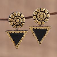 Gold-Tone and Black Ceramic Dangle Earrings from India 'Mystic Beauty' Item ID: 2669924355
