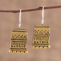 Gold-Tone Ceramic Dangle Earrings Crafted in India 'Golden Dance' Item ID: 2671790562