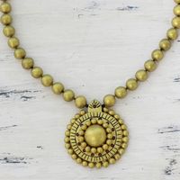 Gold Tone Ceramic Pendant Necklace by Indian Artisans 'Golden Royalty' Item ID: 2671791989