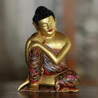 Gold-Tone Floral Wood Buddha Sculpture from Bali 'Buddha Garden' Item ID: 2671736828