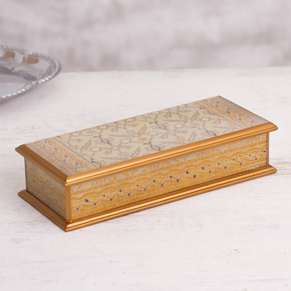 Gold-Tone Reverse-Painted Glass Decorative Box from Peru 'Golden Colonial Elegance' Item ID: 2671400716