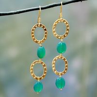 I got these to wear with a deep green colored dress. They are perfect. The color of the stone is beautiful and the movement of the earrings makes them even more interesting. They are delicate, only about 1" long, but still make a statement.