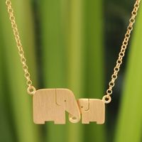 Gold Vermeil Elephant Necklace 'Family Love' Item ID: 2669925766