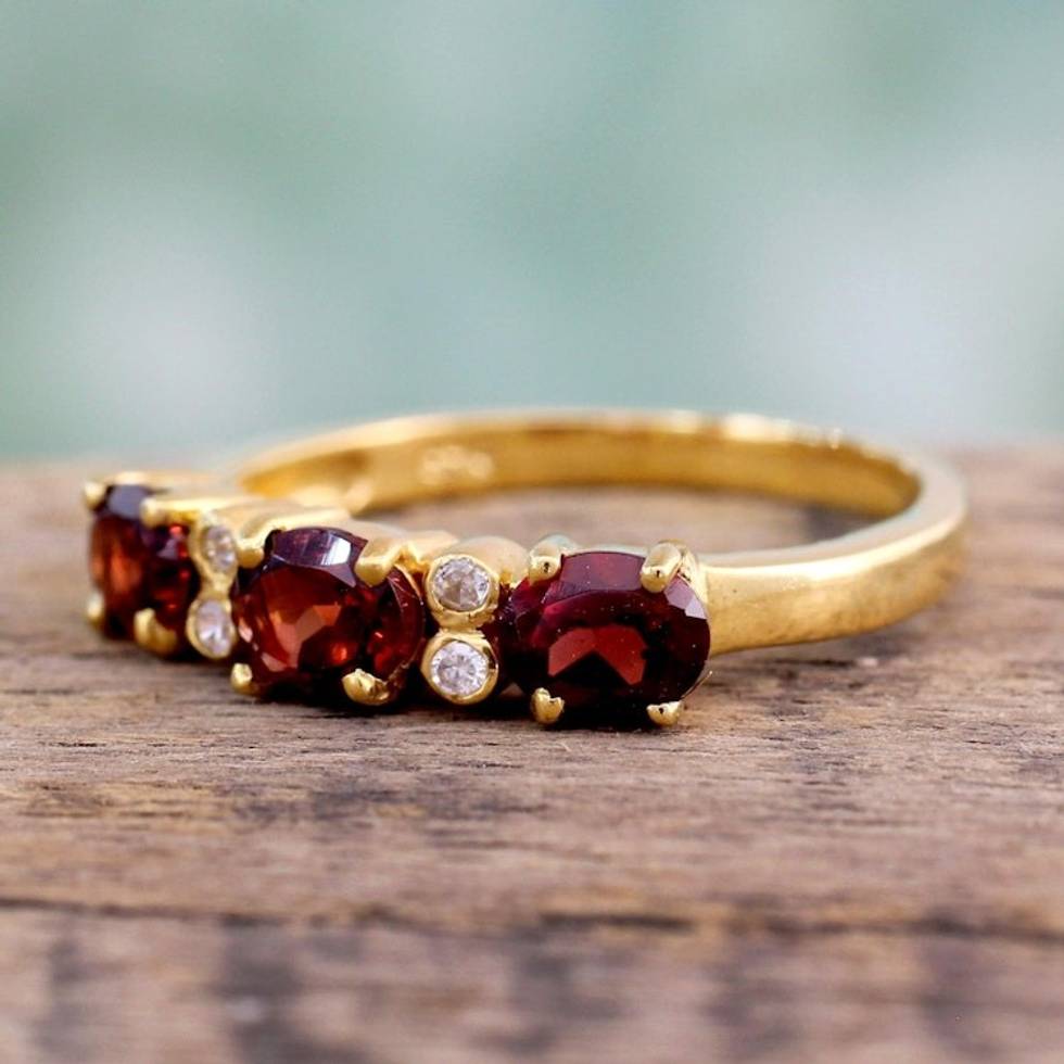 Gold vermeil garnet three-stone ring 'Ode' Item ID: 2671667583