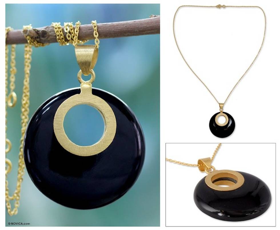 Gold Vermeil Onyx Necklace Jewelry from India 'Skylight' Item ID: 2671620766
