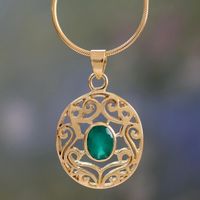 Gold Vermeil Pendant Necklace with Green Enhanced Onyx 'Golden Goddess' Item ID: 2671793752