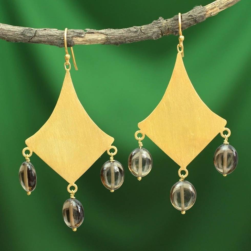 Gold vermeil smoky quartz dangle earrings 'Seduction' Item ID: 2671794141