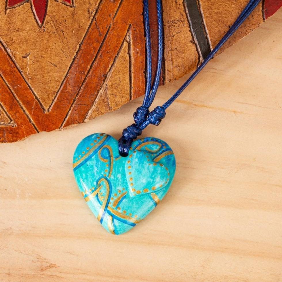 Golden Accent Aqua Papier Mache Heart Necklace 'Hearts Together' Item ID: 2669931403