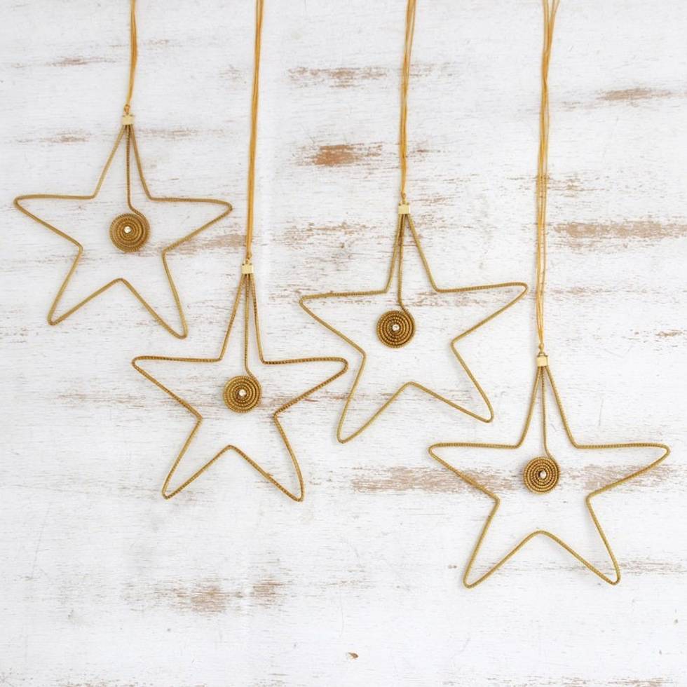 Golden Grass and Rhinestone Star Ornaments Set of 4 'Golden Stars' Item ID: 2669887450