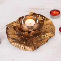 Golden-Toned Lotus-Themed Iron Tealight Candleholder 'Heaven's Lotus' Item ID: 2676647551