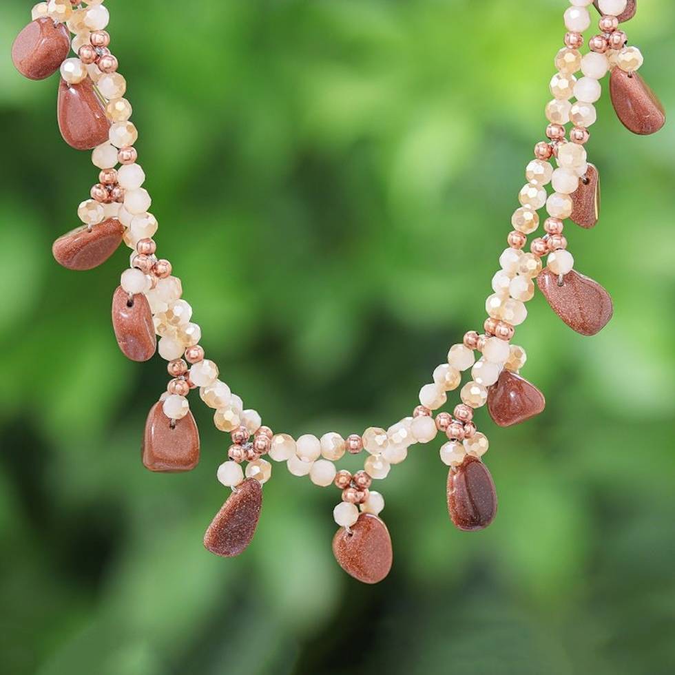 Goldstone Beaded Necklace with Silver-Plated Extender 'Wonderful Orange' Item ID: 2671798125