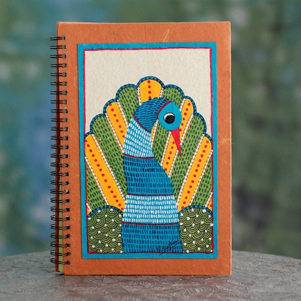 Gond Style Handmade Paper Journal by Indian Artisan 'Dance of Freedom' Item ID: 2671793979