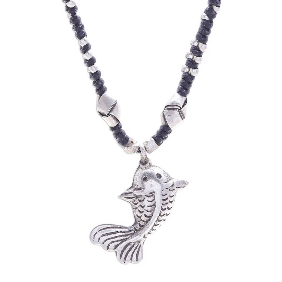 Good Fortune Fish-Themed Silver and Nylon Pendant Necklace 'Lucky Fin' Item ID: 2671646633