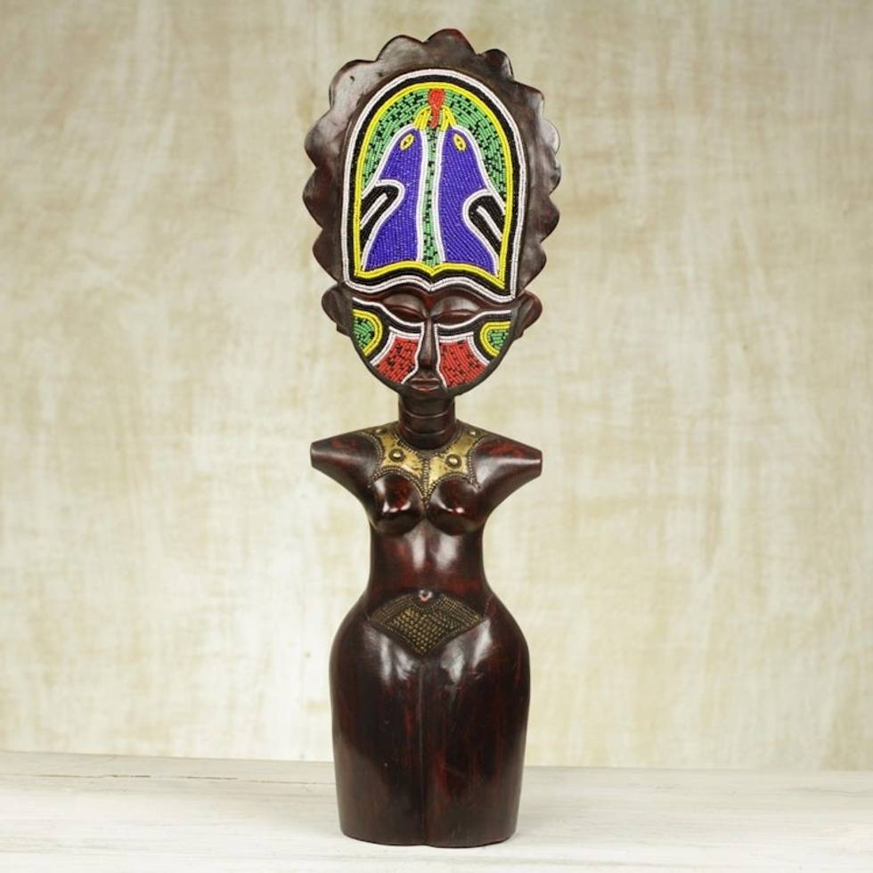 Good Life Akan Doll Beaded Wood Sculpture Collectible Art 'Good Life Obrapa' Item ID: 2671800971