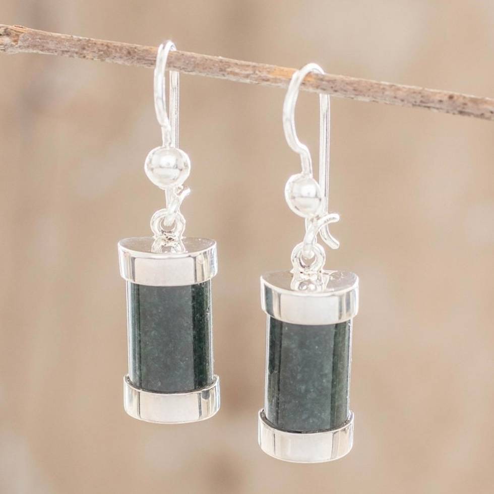 Good Luck Sterling Silver Dangle Jade Earrings 'Sweet Maya' Item ID: 2669923591