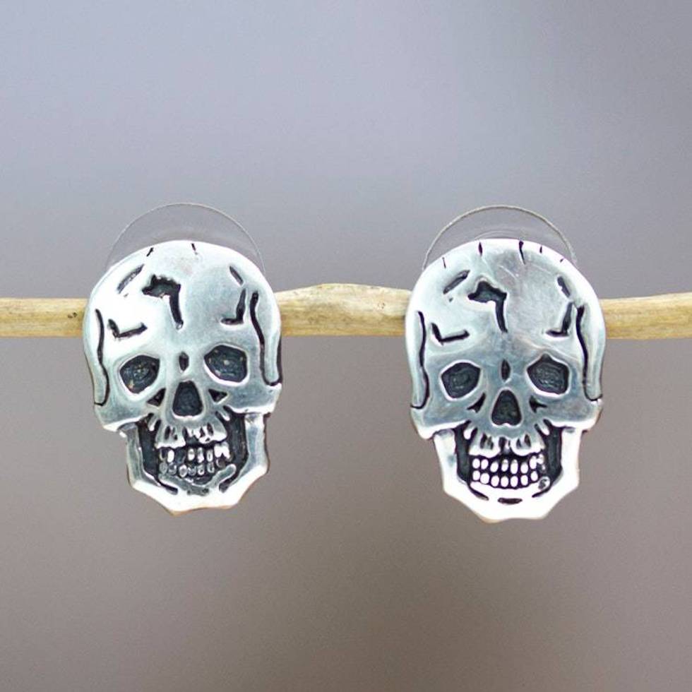 Gothic-Inspired Skull-Themed Sterling Silver Button Earrings 'Underworld Faade' Item ID: 2676647067