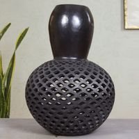 Gourd Theme Incised Black Pottery Vase from Oaxaca 'Black Gourd Honeycomb' Item ID: 2671808755