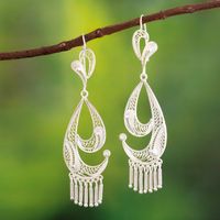 Graceful Silver Filigree Earrings from Peru 'Waves' Item ID: 2671400431