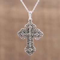 Greek Key Motif Sterling Silver Cross Pendant Necklace 'Key to Heaven' Item ID: 2671621111