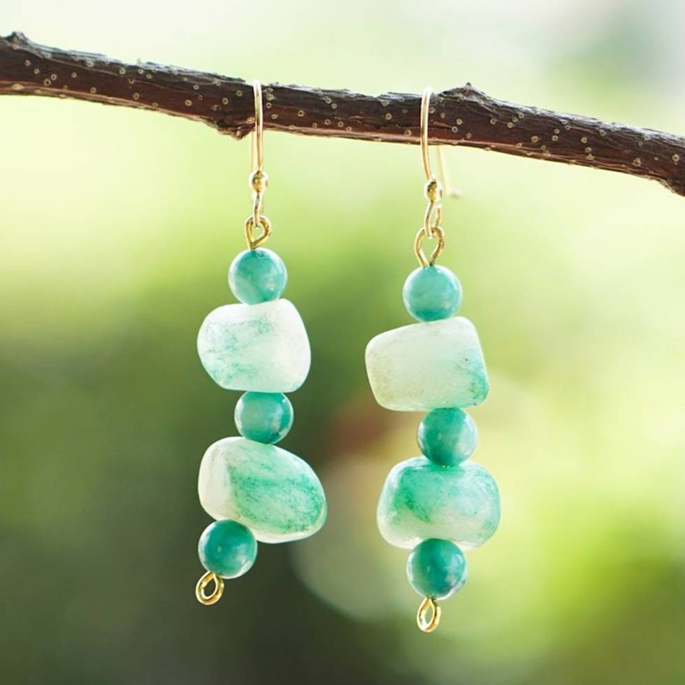 Green Agate and Recycled Glass Beaded Dangle Earrings 'Justice Charm' Item ID: 2671804288