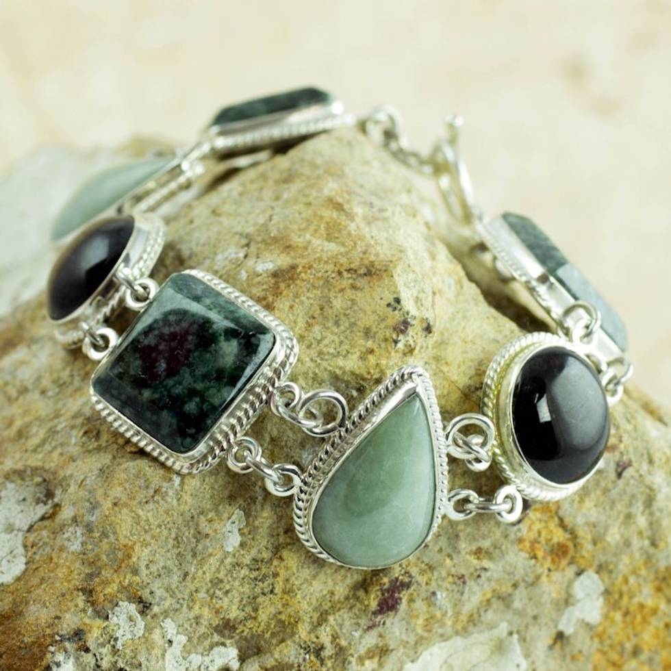 Green and Black Jade on Sterling Silver Bracelet 'Natural Geometry' Item ID: 2669923503